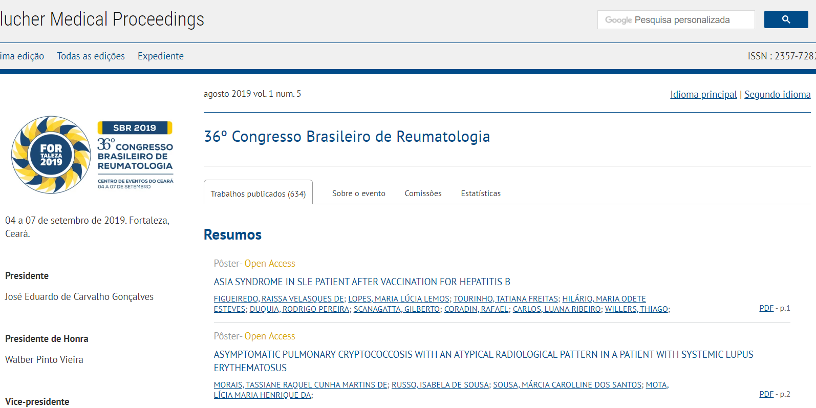 Já estão disponíveis os mais de 600 trabalhos publicados no 36º Congresso Brasileiro de Reumatologia, que em 2019 aconteceu em Fortaleza. Os trabalhos são citáveis como publicação contendo ISSN do periódico e DOI individualizado para cada trabalho. A disponibilidade destas publicações em anais, além de divulgar o conteúdo, traz visibilidade também aos autores que se…