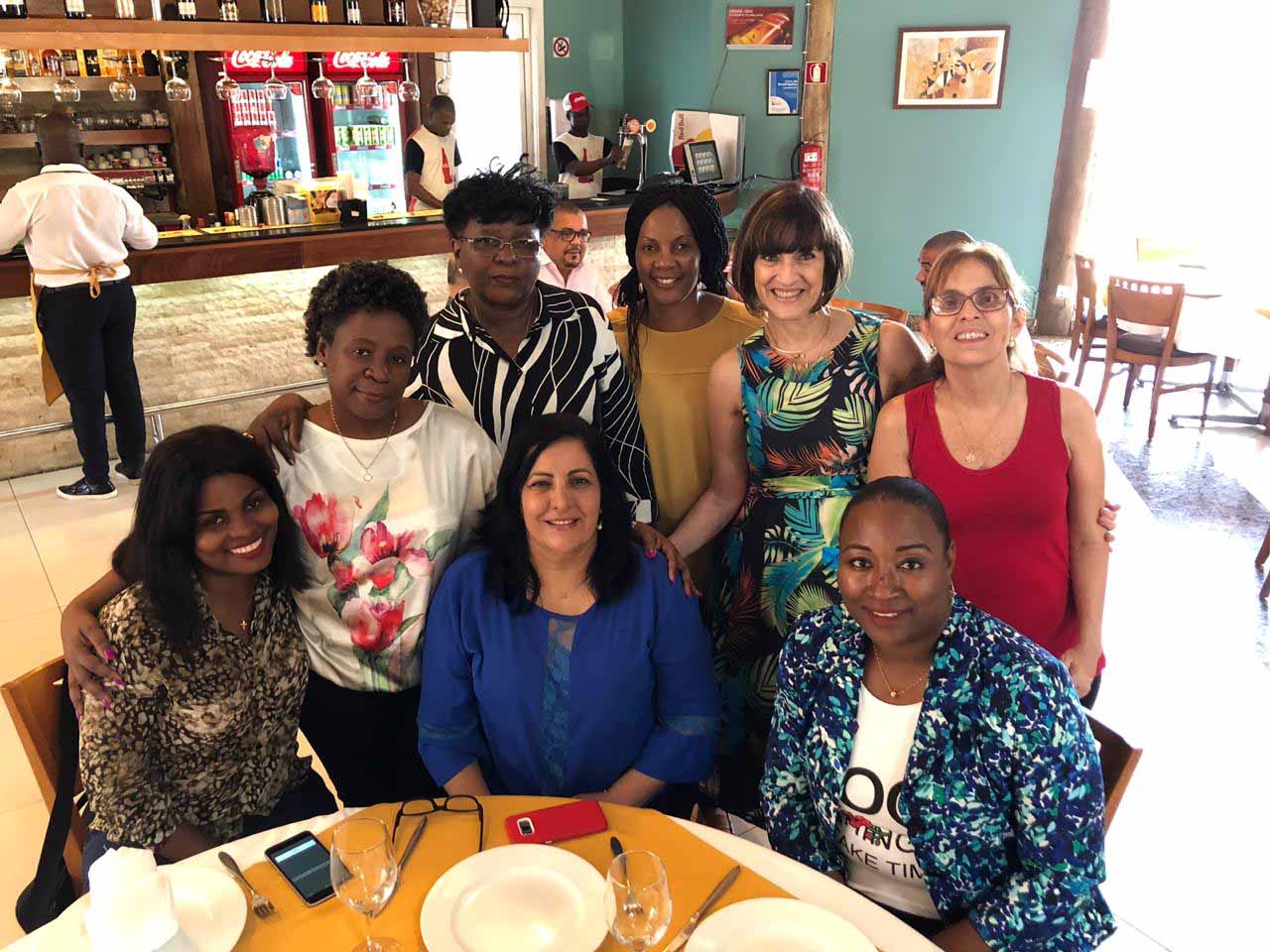 As médicas Dra. Selma Merenlender, Dra. Bianca Elena Bica e Dra. Marlucia Barcelos, da Sociedade de Reumatologia do Rio de Janeiro, com colegas reumatologistas de Angola.